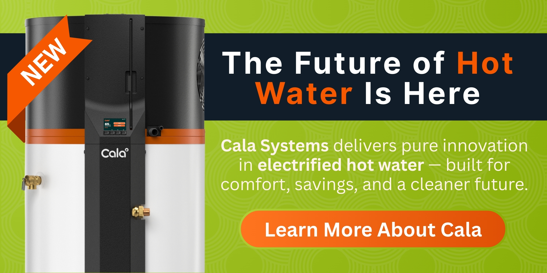 Most hybrid water heaters react when the tank cools. Cala predicts when your home will need hot water and heats proactively, saving more energy while maintaining comfort. It also features a variable-speed compressor, integrated mixing valve, and performance monitoring portal, giving both homeowners and installers a smarter, more reliable experience.
